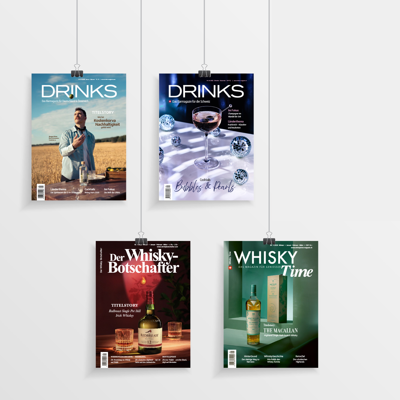 Im Verlagsbereich sind die Magazine DRINKS - Das Barmagazin für Deutschland & Österreich, DRINKS - Das Barmagazin für die Schweiz , Der Whisky-Botschafter - Journal für Kenner und Genießer, Whisky Time - Das Magazin für Geniesser, der Poppe & Neumann „Hotel- und Städteguide Deutschland“ sowie weitere Spezial-Ausgaben angegliedert.
